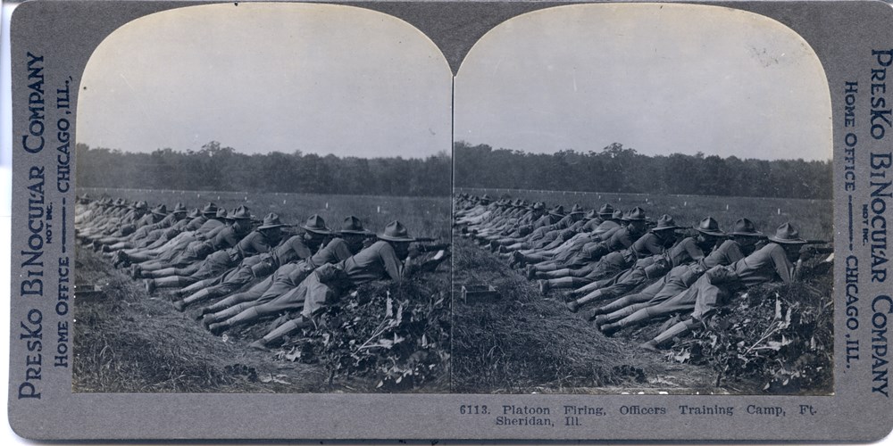 Image Id: 3042 Contributor: The Jordan/Ference Collection Theatre: Home Front Subject: Training Location: Fort Sheridan, Illinois, USA Regiment: Unknown Service Arm: Infantry Battle: Unknown Date: Unknown Combatants: American Publisher: Presko Binocular Co Source: American Directory: PresKo