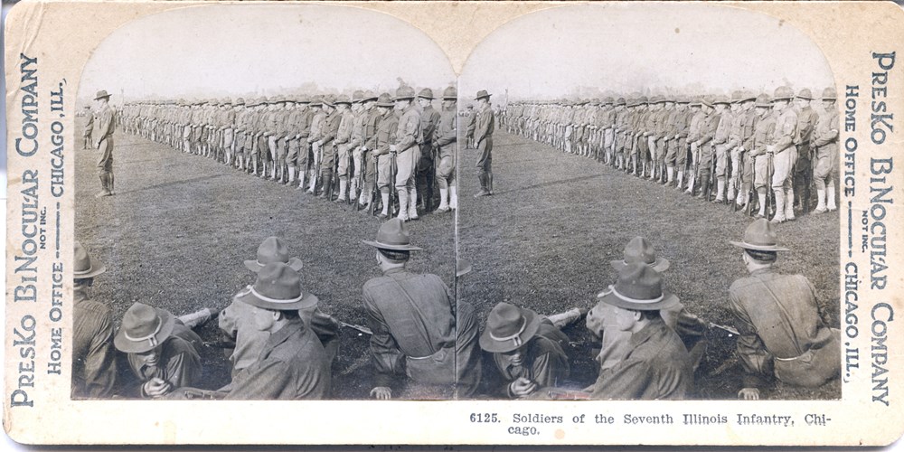 Image Id: 3045 Contributor: The Jordan/Ference Collection Theatre: Home Front Subject: Training Location: Chicago, USA Regiment: Seventh Illinois Infantry Service Arm: Infantry Battle: Unknown Date: Unknown Combatants: American Publisher: Presko Binocular Co Source: American Directory: PresKo