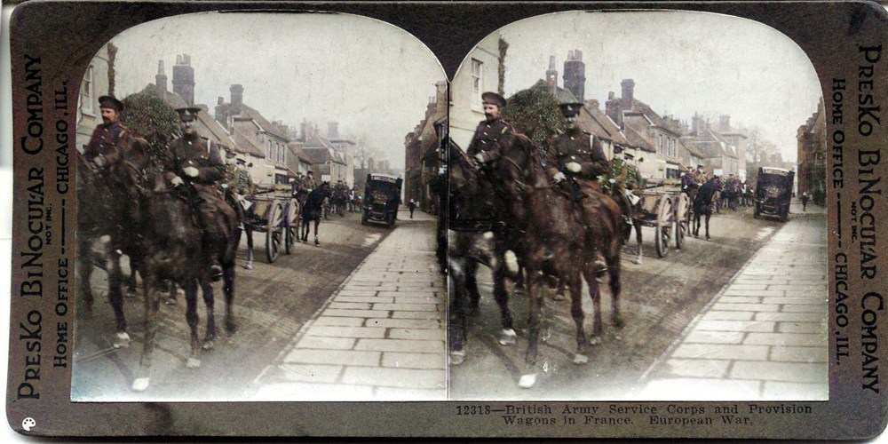Image Id: 3062 Contributor: The Jordan/Ference Collection Theatre: Western Front Subject: Behind the Lines Location: France Regiment: Unknown Service Arm: Army Service Corps Battle: Unknown Date: Unknown Combatants: British Publisher: Presko Binocular Co Source: American Directory: PresKo