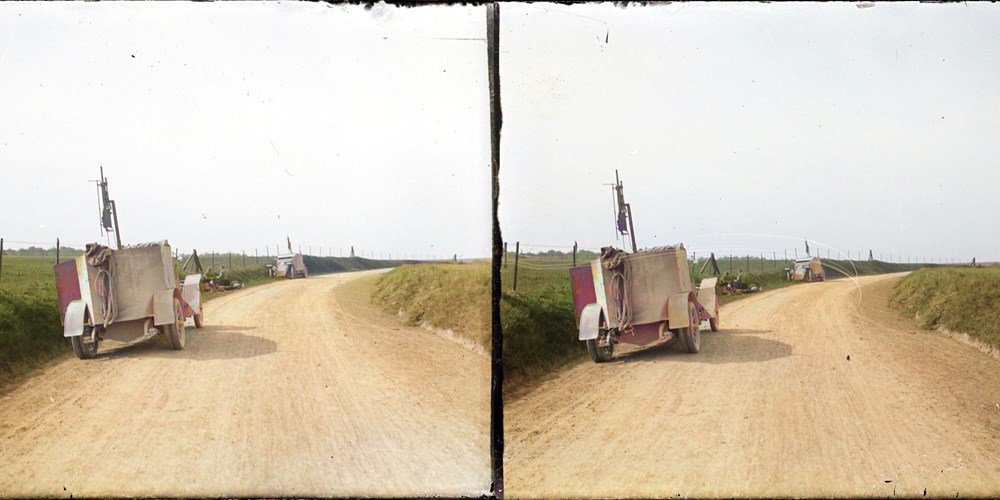 Image Id: 3069 Contributor: The Jordan/Ference Collection Theatre: Western Front Subject: Behind the Lines Location: France Regiment: Unknown Service Arm: Tanks/Armoured Cars Battle: Unknown Date: 1915 Combatants: French Publisher: Amateur Stereographers (Collections) Source: French Directory: FrenchEngineerCorps1915