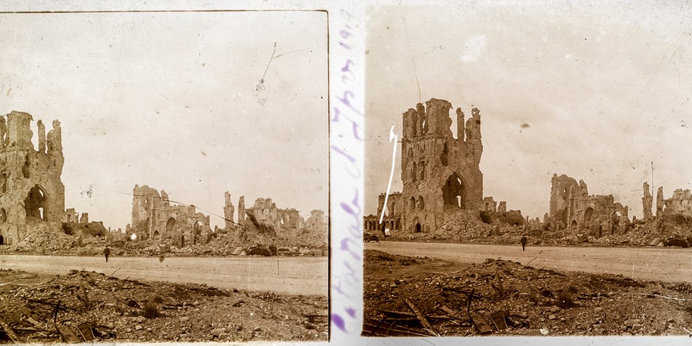 Image Id: 3092 Contributor: The Jordan/Ference Collection Theatre: Post-War Subject: Battle Aftermath Location: Ypres, Belgium Regiment: Unknown Service Arm: Unknown Battle: Unknown Date: 1919 Combatants: Unknown Publisher: Amateur Stereographers (Individual) Source: French Directory: FrenchAmateurSlides