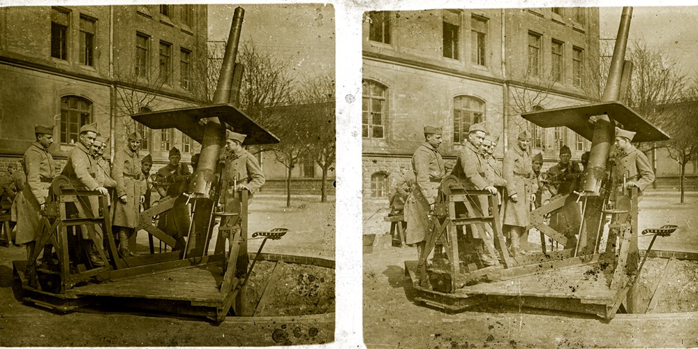 Image Id: 3100 Contributor: The Jordan/Ference Collection Theatre: Western Front Subject: Behind the Lines Location: Unknown Regiment: Unknown Service Arm: Anti-Aircraft Artillery Battle: Unknown Date: Unknown Combatants: American Publisher: Amateur Stereographers (Individual) Source: French Directory: FrenchAmateurSlides