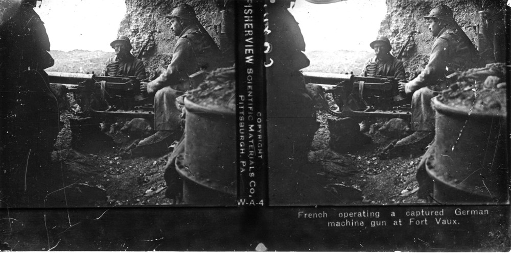 French operating a captured German machine gun at Fort Vaux