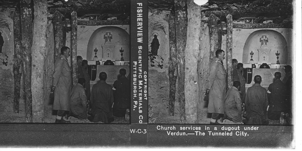 Church services in a dugout under Verdun--The Tunneled City