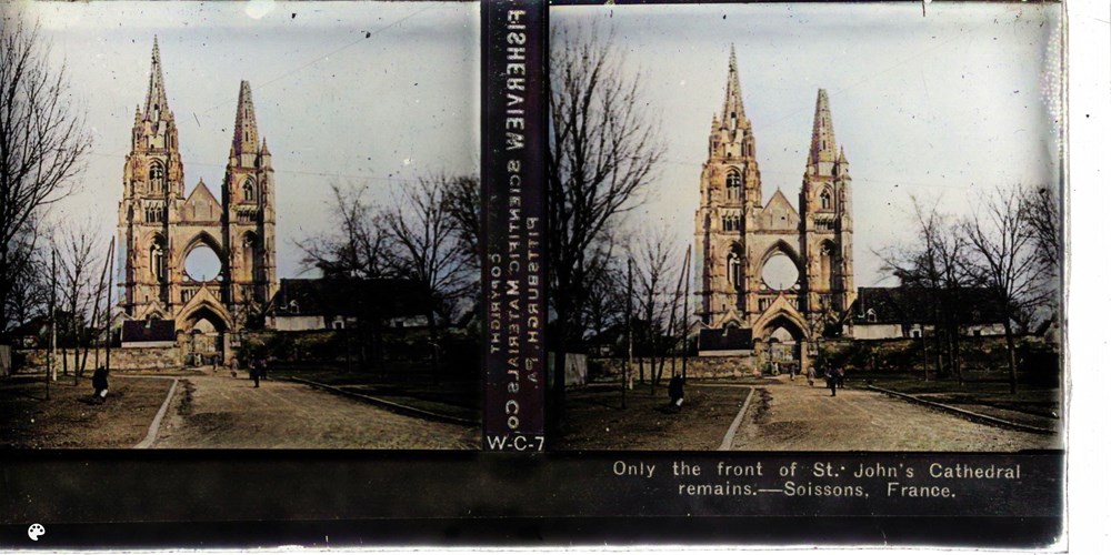 Only the front of St. John's Cathedral remains--Soissons, France