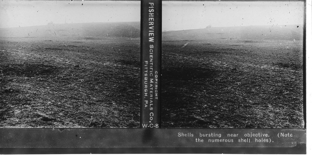 Shells bursting near objective. (Note the numerous shell holes)