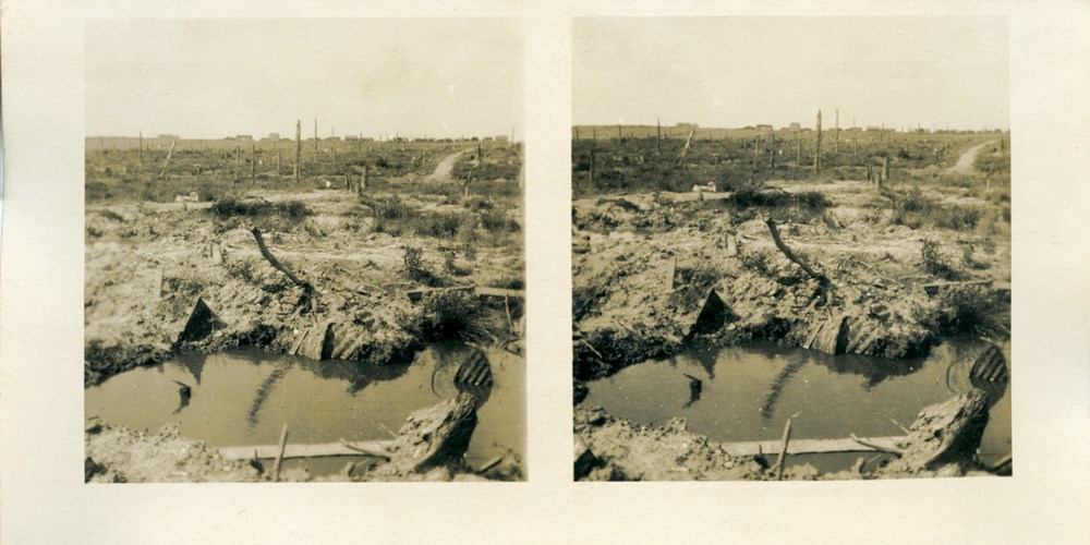 Shellholes near the Menin Road, with the remains of Menin Forest.