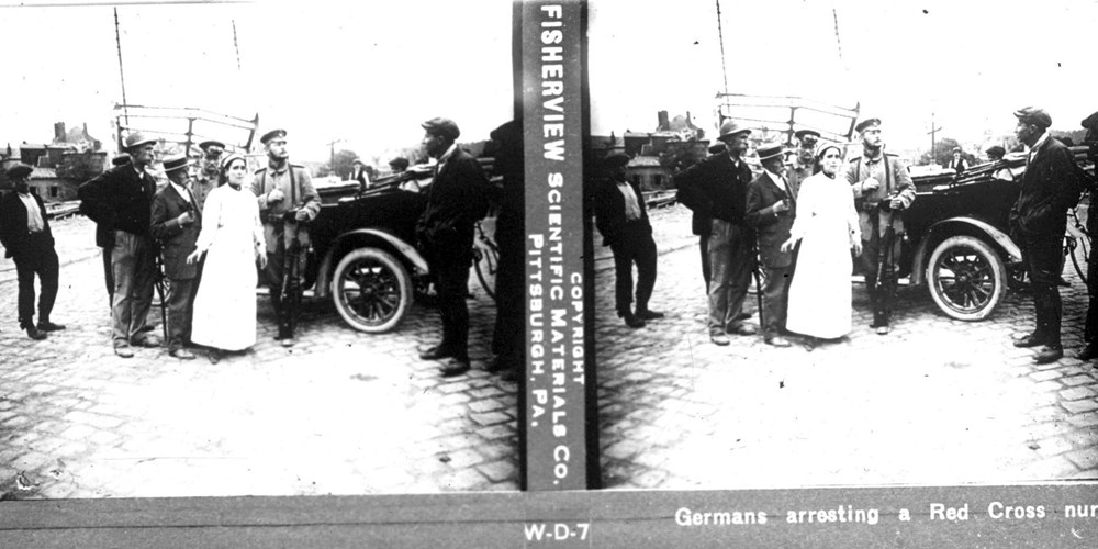 Germans arresting a Red Cross nurse