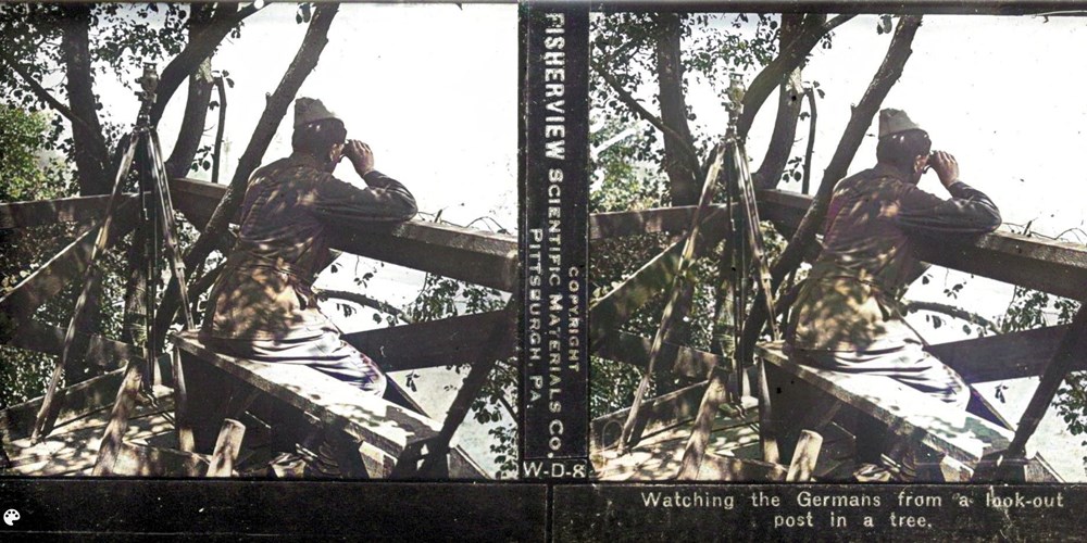 Image Id: 3142 Contributor: The Jordan/Ference Collection Theatre: Western Front Subject: The Front Line Location: Unknown Regiment: Unknown Service Arm: Artillery Spotters Battle: Unknown Date: Unknown Combatants: French Publisher: Fischerview Source: American Directory: Fisherview