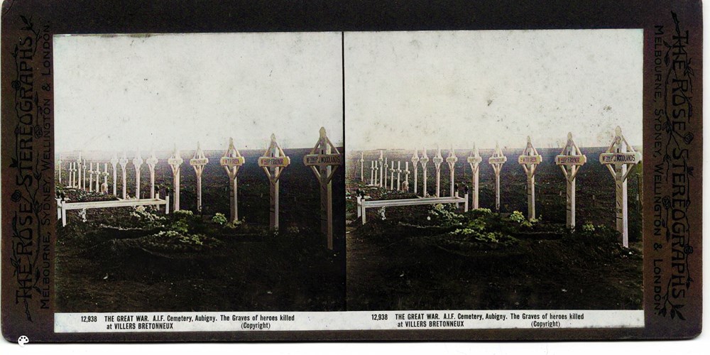 x-ref https://www.ww1cemeteries.com/aubigny-british-cemetery.html and https://www.awm.gov.au/collection/PL522560Image Id: 3170 Contributor: The Jordan/Ference Collection Theatre: Western Front Subject: Cemeteries & Monuments Location: Aubigny, Somme, France Regiment: Unknown Service Arm: Unknown Battle: Unknown Date: Unknown Combatants: Australian Publisher: Rose Stereograph Co Source: Australian Directory: Rose