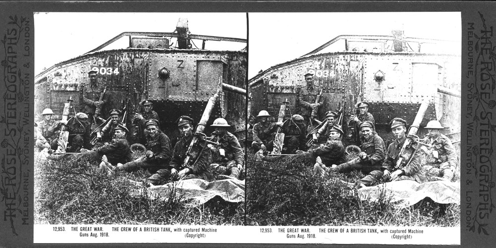 Image Id: 3179 Contributor: The Jordan/Ference Collection Theatre: Western Front Subject: War Booty Location: Unknown Regiment: Unknown Service Arm: Tanks/Armoured Cars Battle: Unknown Date: Unknown Combatants: British Publisher: Rose Stereograph Co Source: Australian Directory: Rose