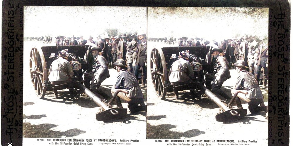 Image Id: 3186 Contributor: The Jordan/Ference Collection Theatre: Home Front Subject: Training Location: Broadmeadows Camp, Victoria, Australia Regiment: AIF Service Arm: Field Artillery Battle: Unknown Date: Unknown Combatants: Australian Publisher: Rose Stereograph Co Source: Australian Directory: Rose