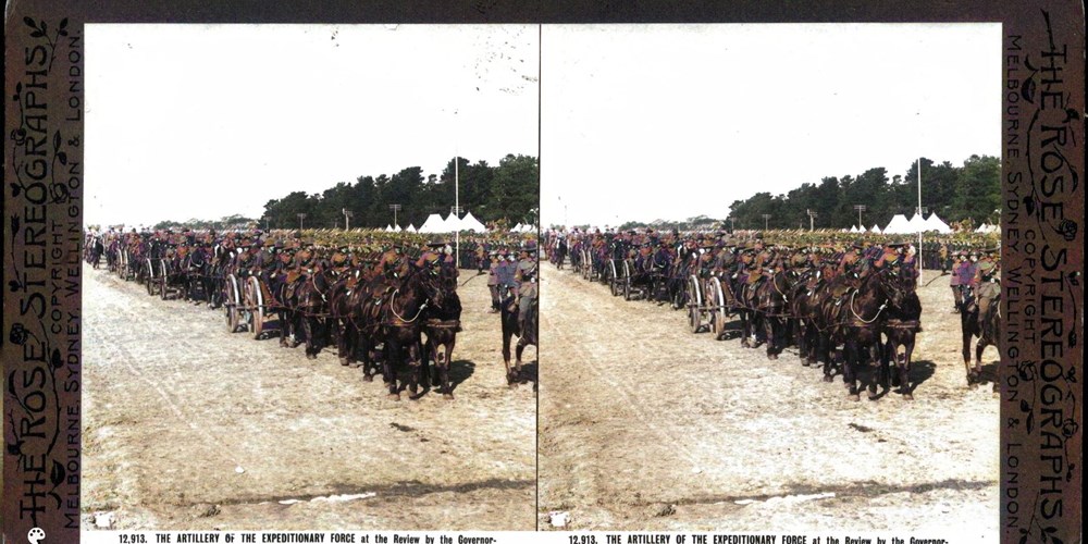 x-ref https://repository.erc.monash.edu/items/show/25695#?c=0&m=0&s=0&cv=0&xywh=0%2C-55%2C3569%2C2059 and https://www.naa.gov.au/learn/learning-resources/learning-resource-themes/war/world-war-i/australias-governor-general-during-world-war-i-sir-ronald-muImage Id: 3194 Contributor: The Jordan/Ference Collection Theatre: Home Front Subject: Parades Location: Broadmeadows Camp, Victoria, Australia Regiment: AIF Service Arm: Field Artillery Battle: Unknown Date: Unknown Combatants: Australian Publisher: Rose Stereograph Co Source: Australian Directory: Rose