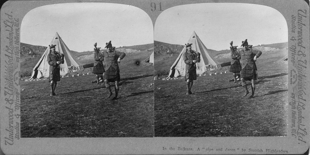 In the Balkans. A "pipe and dance" by Scottish Highlanders