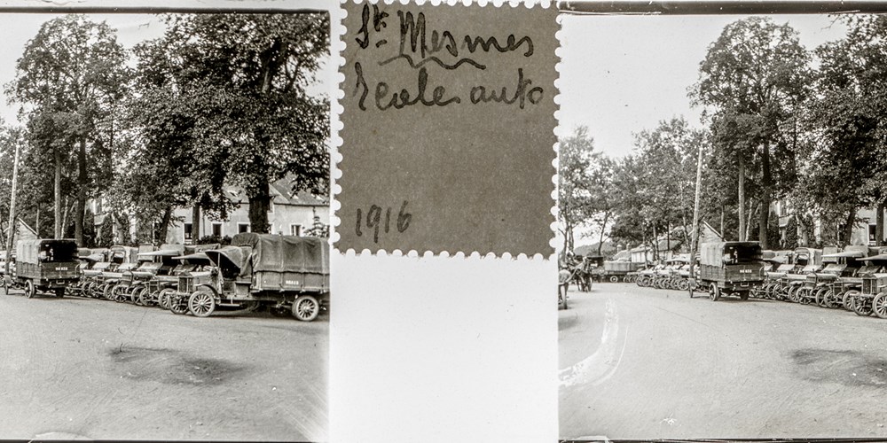 Image Id: 3217 Contributor: The Jordan/Ference Collection Theatre: Western Front Subject: Behind the Lines Location: St Mesmes near Paris, France Regiment: Unknown Service Arm: Anciliary Services Battle: Unknown Date: 1916 Combatants: French Publisher: Amateur Stereographers (Collections) Source: French Directory: Ambulance-Convoys-1915-1916