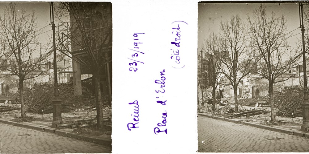 Image Id: 3221 Contributor: The Jordan/Ference Collection Theatre: Post-War Subject: Battle Aftermath Location: Reims, France Regiment: Unknown Service Arm: Unknown Battle: Unknown Date: 23 March 1919 Combatants: Unknown Publisher: Amateur Stereographers (Collections) Source: French Directory: Reims 23 March 1919
