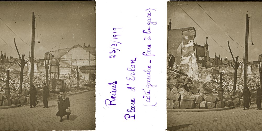 Image Id: 3222 Contributor: The Jordan/Ference Collection Theatre: Post-War Subject: Battle Aftermath Location: Reims, France Regiment: Unknown Service Arm: Unknown Battle: Unknown Date: 23 March 1919 Combatants: Unknown Publisher: Amateur Stereographers (Collections) Source: French Directory: Reims 23 March 1919