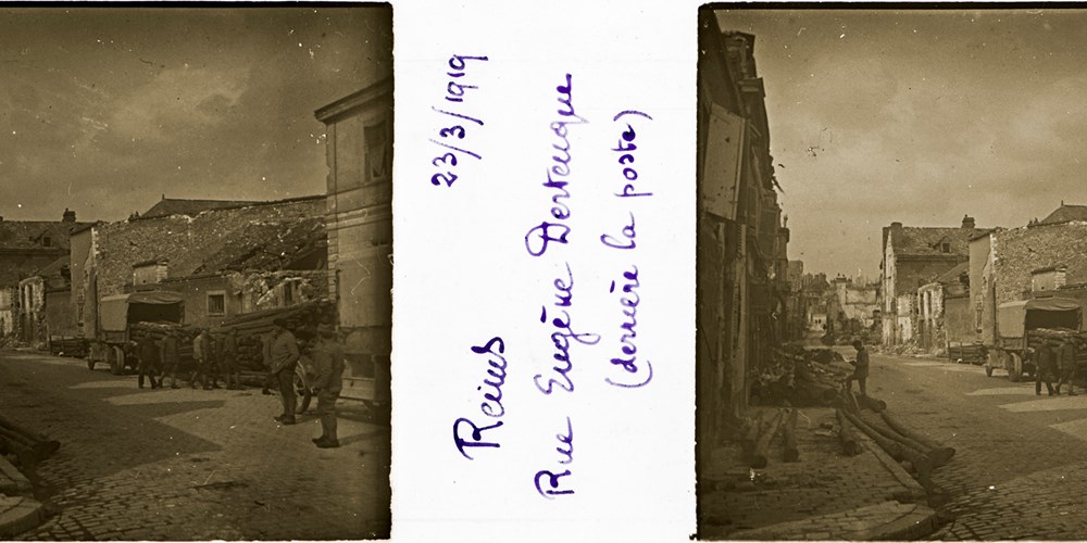 Image Id: 3230 Contributor: The Jordan/Ference Collection Theatre: Post-War Subject: Battle Aftermath Location: Reims, France Regiment: Unknown Service Arm: Unknown Battle: Unknown Date: 23 March 1919 Combatants: Unknown Publisher: Amateur Stereographers (Collections) Source: French Directory: Reims 23 March 1919