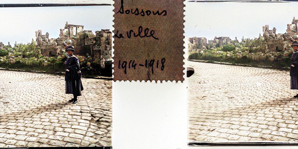Image Id: 3234 Contributor: The Jordan/Ference Collection Theatre: Post-War Subject: Battle Aftermath Location: Soissons, France Regiment: Unknown Service Arm: Unknown Battle: Unknown Date: Unknown Combatants: Unknown Publisher: Amateur Stereographers (Collections) Source: French Directory: Soissons-Ruins-Tourism