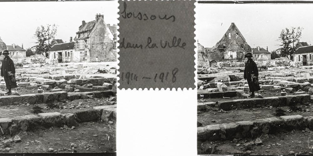 Image Id: 3236 Contributor: The Jordan/Ference Collection Theatre: Post-War Subject: Battle Aftermath Location: Soissons, France Regiment: Unknown Service Arm: Unknown Battle: Unknown Date: Unknown Combatants: Unknown Publisher: Amateur Stereographers (Collections) Source: French Directory: Soissons-Ruins-Tourism