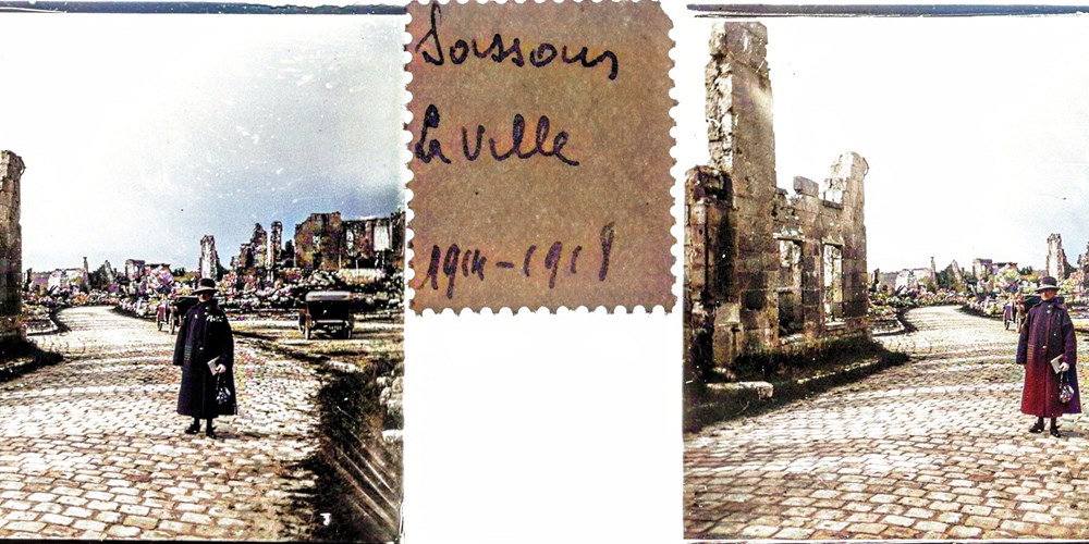Image Id: 3240 Contributor: The Jordan/Ference Collection Theatre: Post-War Subject: Battle Aftermath Location: Soissons, France Regiment: Unknown Service Arm: Unknown Battle: Unknown Date: Unknown Combatants: Unknown Publisher: Amateur Stereographers (Collections) Source: French Directory: Soissons-Ruins-Tourism