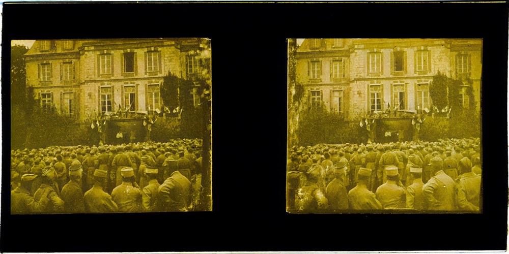 Image Id: 3261 Contributor: The Jordan/Ference Collection Theatre: Western Front Subject: Parades Location: France Regiment: Unknown Service Arm: Unknown Battle: Unknown Date: Unknown Combatants: French Publisher: Amateur Stereographers (Collections) Source: French Directory: Neutral-Grey