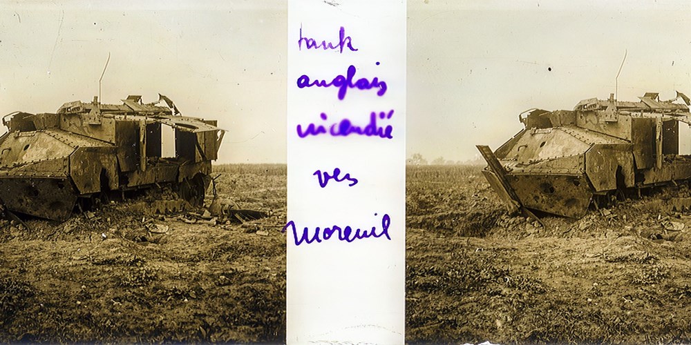 tank anglais incendie vers Moreuil - British tank burnt out near Moreuil