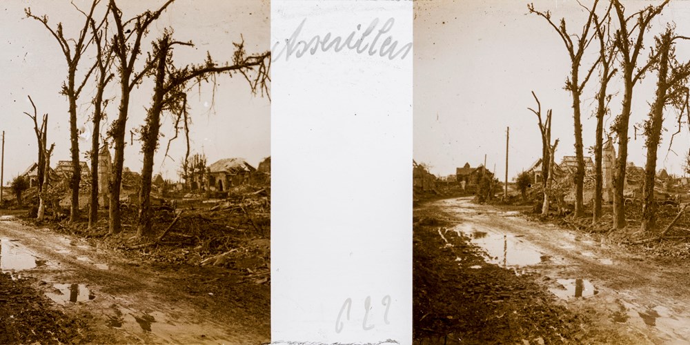 Note the ditched armoured car behind the treesImage Id: 3326 Contributor: The Jordan/Ference Collection Theatre: Western Front Subject: Battle Aftermath Location: Somme, Assevillers Regiment: Unknown Service Arm: Unknown Battle: Somme Date: Unknown Combatants: Unknown Publisher: Brentano's Source: French Directory: Brentanos 0001-0100