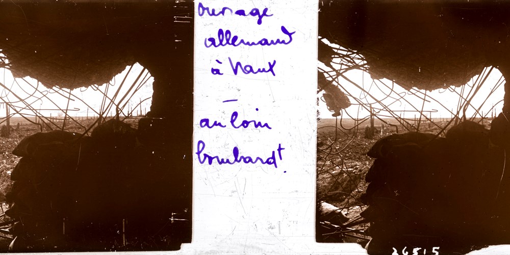 ouvrage allemand à Vaux - au loin bombardement - German "work" at Vaux - bombardment in the distance