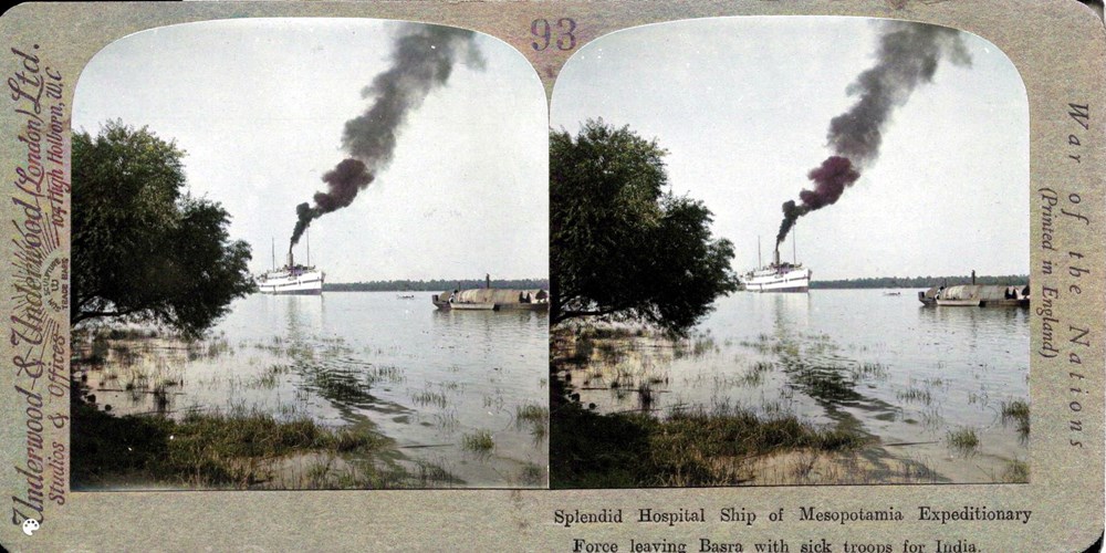 Image Id: 34 Contributor: The Jordan/Ference Collection Theatre: Middle East Subject: Surface Vessels Location: Basra, Mesopotamia Regiment: Unknown Service Arm: Medical Services Battle: Unknown Date: Unknown Combatants: Indian Publisher: Underwood & Underwood Source: British Directory: WOTNA