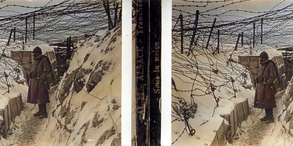 Alsace, tranchée sous la neige - snow-covered trench in Alsace