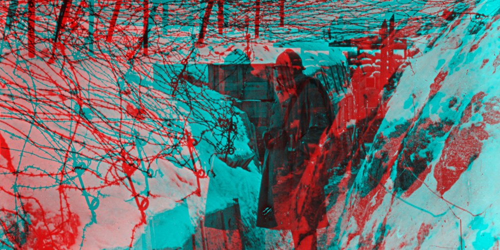 Alsace, tranchée sous la neige - snow-covered trench in Alsace