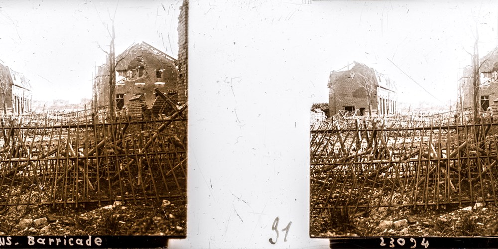 Lens, barricade - barricaded street in devasted Lens