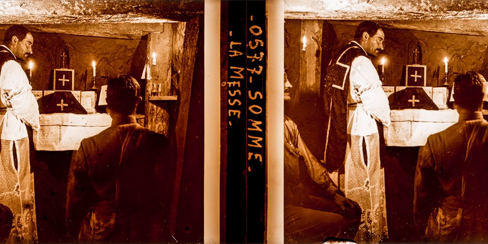 Somme, la messe - conducting Mass in a dug out on the Somme