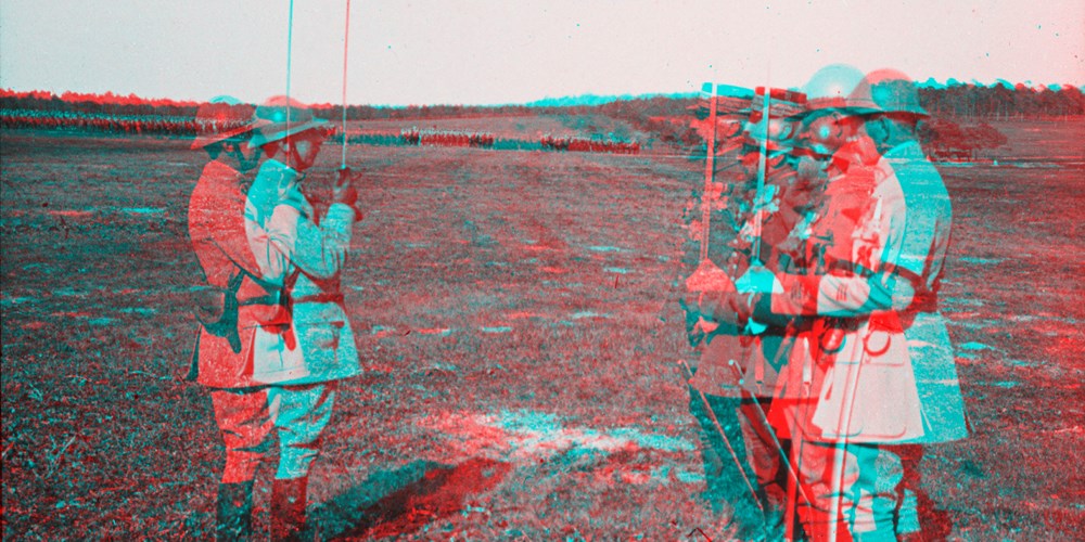 Image Id: 3494 Contributor: The Jordan/Ference Collection Theatre: Western Front Subject: Parades Location: Unknown Regiment: Unknown Service Arm: Unknown Battle: Unknown Date: Unknown Combatants: French Publisher: Amateur Stereographers (Collections) Source: French Directory: OfficersAndBalloons