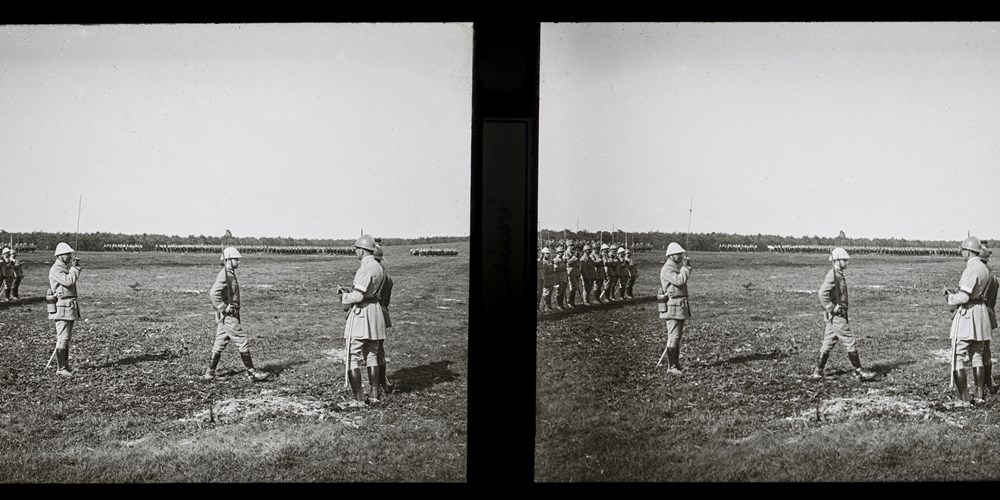 Image Id: 3495 Contributor: The Jordan/Ference Collection Theatre: Western Front Subject: Parades Location: Unknown Regiment: Unknown Service Arm: Unknown Battle: Unknown Date: Unknown Combatants: French Publisher: Amateur Stereographers (Collections) Source: French Directory: OfficersAndBalloons