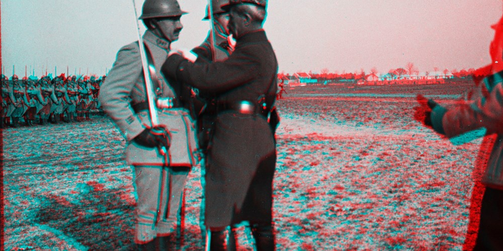 Image Id: 3498 Contributor: The Jordan/Ference Collection Theatre: Western Front Subject: Parades Location: Unknown Regiment: Unknown Service Arm: Unknown Battle: Unknown Date: Unknown Combatants: French Publisher: Amateur Stereographers (Collections) Source: French Directory: OfficersAndBalloons