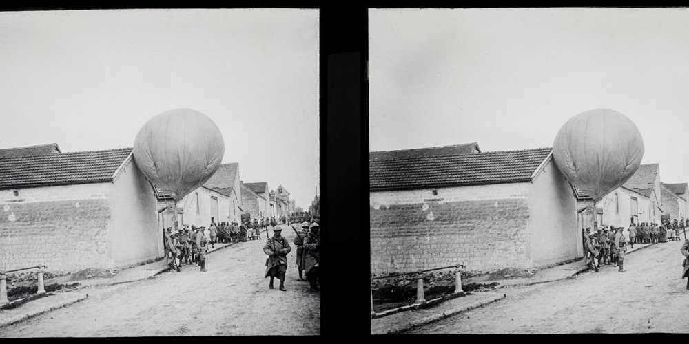 Image Id: 3500 Contributor: The Jordan/Ference Collection Theatre: Western Front Subject: Balloons Location: Unknown Regiment: Unknown Service Arm: Unknown Battle: Unknown Date: Unknown Combatants: French Publisher: Amateur Stereographers (Collections) Source: French Directory: OfficersAndBalloons