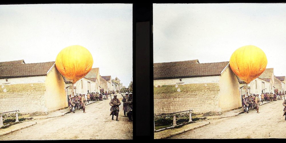 Image Id: 3500 Contributor: The Jordan/Ference Collection Theatre: Western Front Subject: Balloons Location: Unknown Regiment: Unknown Service Arm: Unknown Battle: Unknown Date: Unknown Combatants: French Publisher: Amateur Stereographers (Collections) Source: French Directory: OfficersAndBalloons
