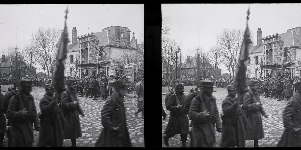 Image Id: 3502 Contributor: The Jordan/Ference Collection Theatre: Western Front Subject: Parades Location: Marne, Suippes Regiment: Unknown Service Arm: Unknown Battle: Unknown Date: Unknown Combatants: French Publisher: Amateur Stereographers (Collections) Source: French Directory: OfficersAndBalloons
