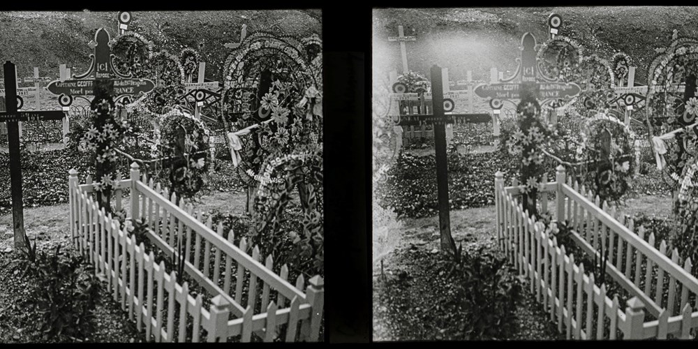 Image Id: 3506 Contributor: The Jordan/Ference Collection Theatre: Western Front Subject: Cemeteries & Monuments Location: Reims, Villers-Marmery Regiment: Unknown Service Arm: Unknown Battle: Unknown Date: Unknown Combatants: Unknown Publisher: Amateur Stereographers (Collections) Source: French Directory: OfficersAndBalloons