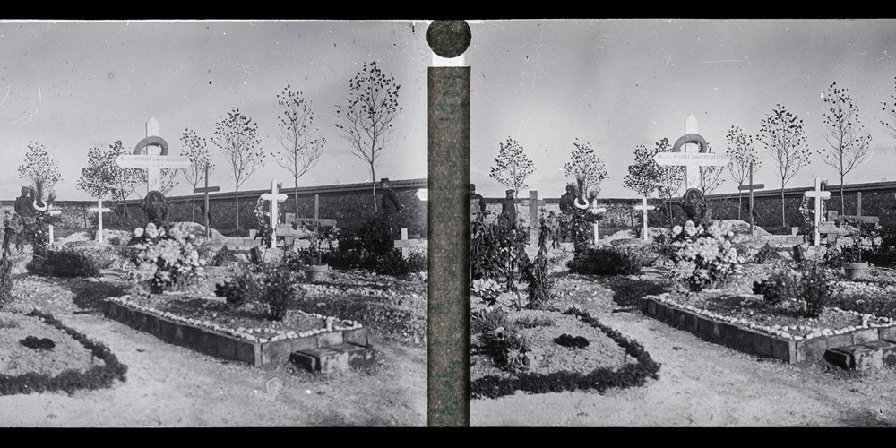 Image Id: 3507 Contributor: The Jordan/Ference Collection Theatre: Western Front Subject: Cemeteries & Monuments Location: Marne, Suippes Regiment: Unknown Service Arm: Unknown Battle: Unknown Date: Unknown Combatants: French Publisher: Amateur Stereographers (Collections) Source: French Directory: OfficersAndBalloons