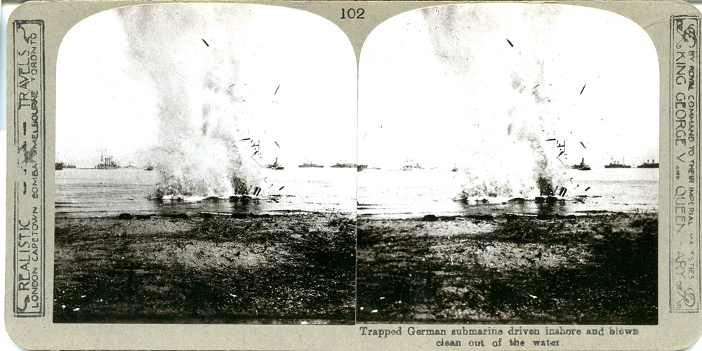 Image Id: 380 Contributor: The Jordan/Ference Collection Theatre: The High Seas Subject: Submarines Location: Unknown Regiment: Unknown Service Arm: Navy Battle: Unknown Date: Unknown Combatants: British / German Publisher: Realistic Travels Source: British Directory: Set of 600 101-200