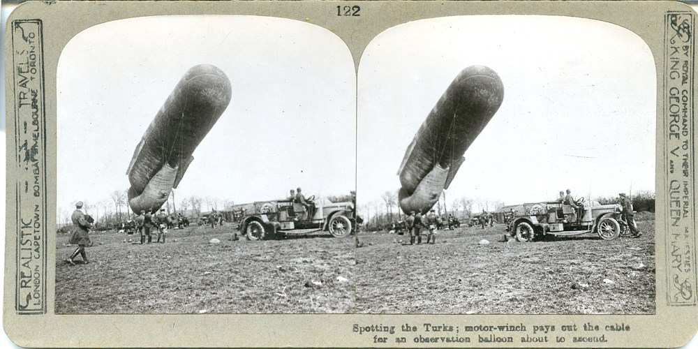 Spotting the Turks; motor-winch pays out the cable for an observation balloon about to ascend