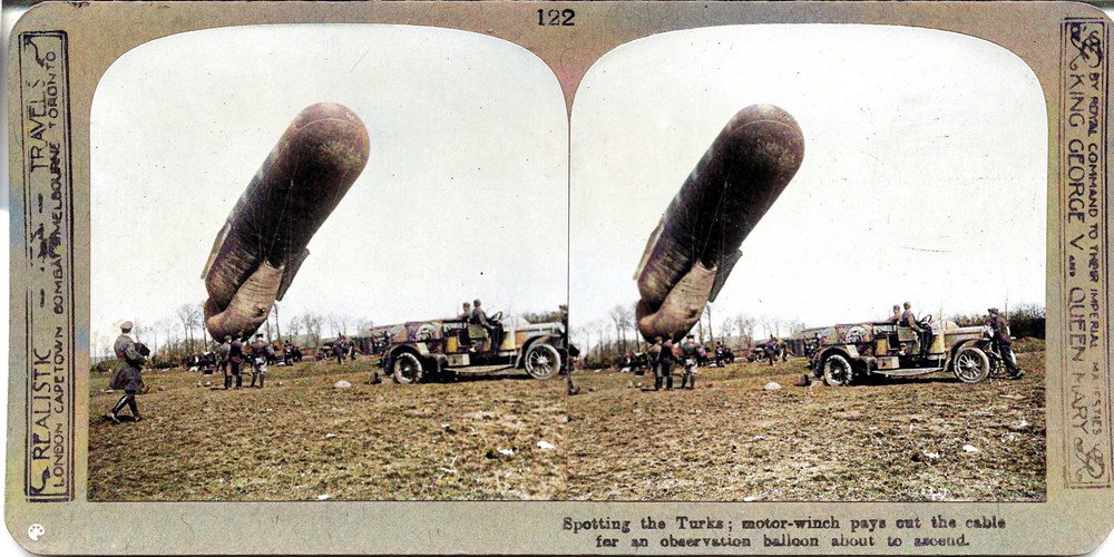 Spotting the Turks; motor-winch pays out the cable for an observation balloon about to ascend