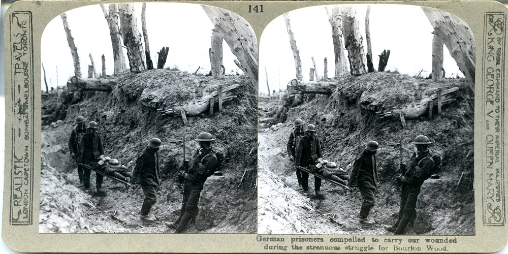 German prisoners compelled to carry our wounded during the strenuous struggle for Bourlon Wood