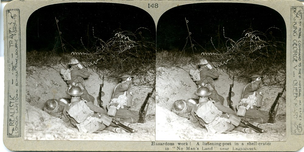 Hazardous work! A listening-post in a shell-crater in "No Man's Land" near Lagnicourt