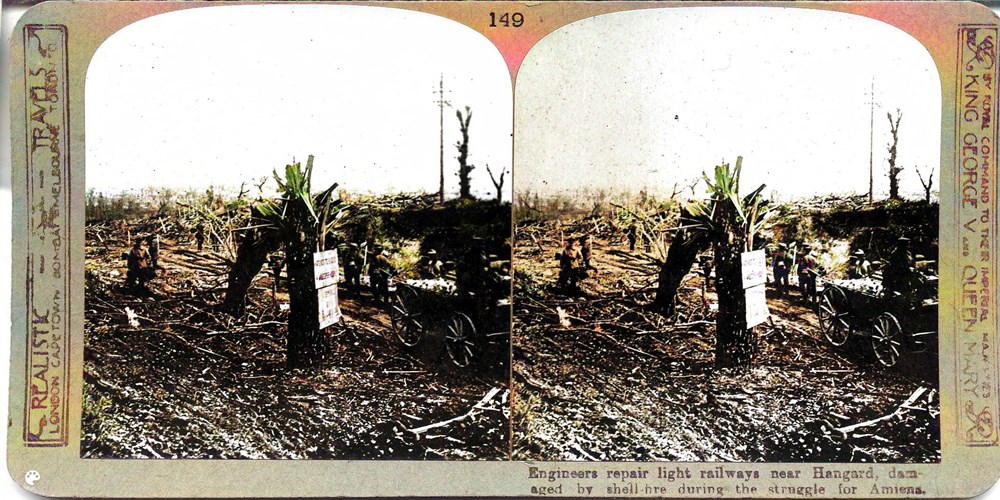 Engineers repair light railways near Hangard, damaged by shell-fire during the struggle for Amiens