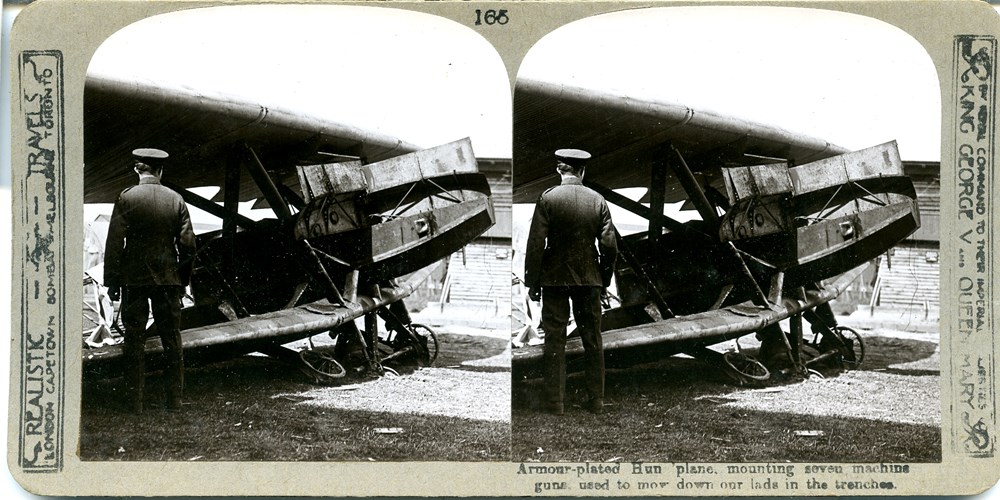 Armour-plated Hun 'plane, mounting seven machine guns, used to mow down our lads in the trenches