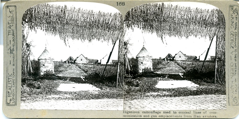 Ingenious camouflage used to conceal lines of communication and gun emplacements from Hun aviators